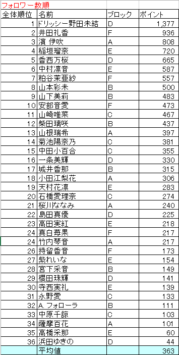 ドリッシーさんは、フォロワー数、貢献者のバランス、獲得ポイントのどれを見ても、一歩以上抜け出ていると思います。この時期で、これだけきれいな形で応援者を増やしているのは、それだけ彼女に、多くの人に愛される魅力があるという事でしょう。